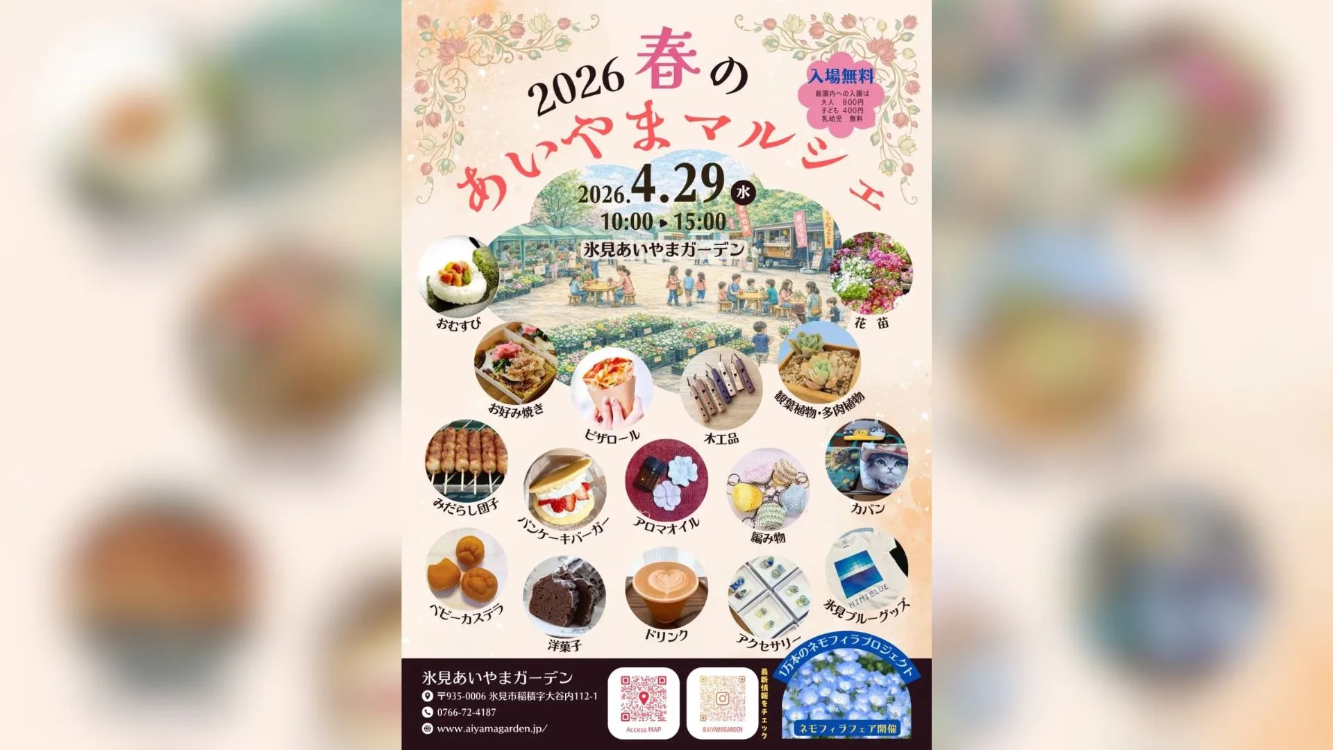 ゴールデンウィークの4月29日(水・祝)に氷見の西洋風庭園 氷見あいやまガーデン で春を楽しむマルシェを開催されます!